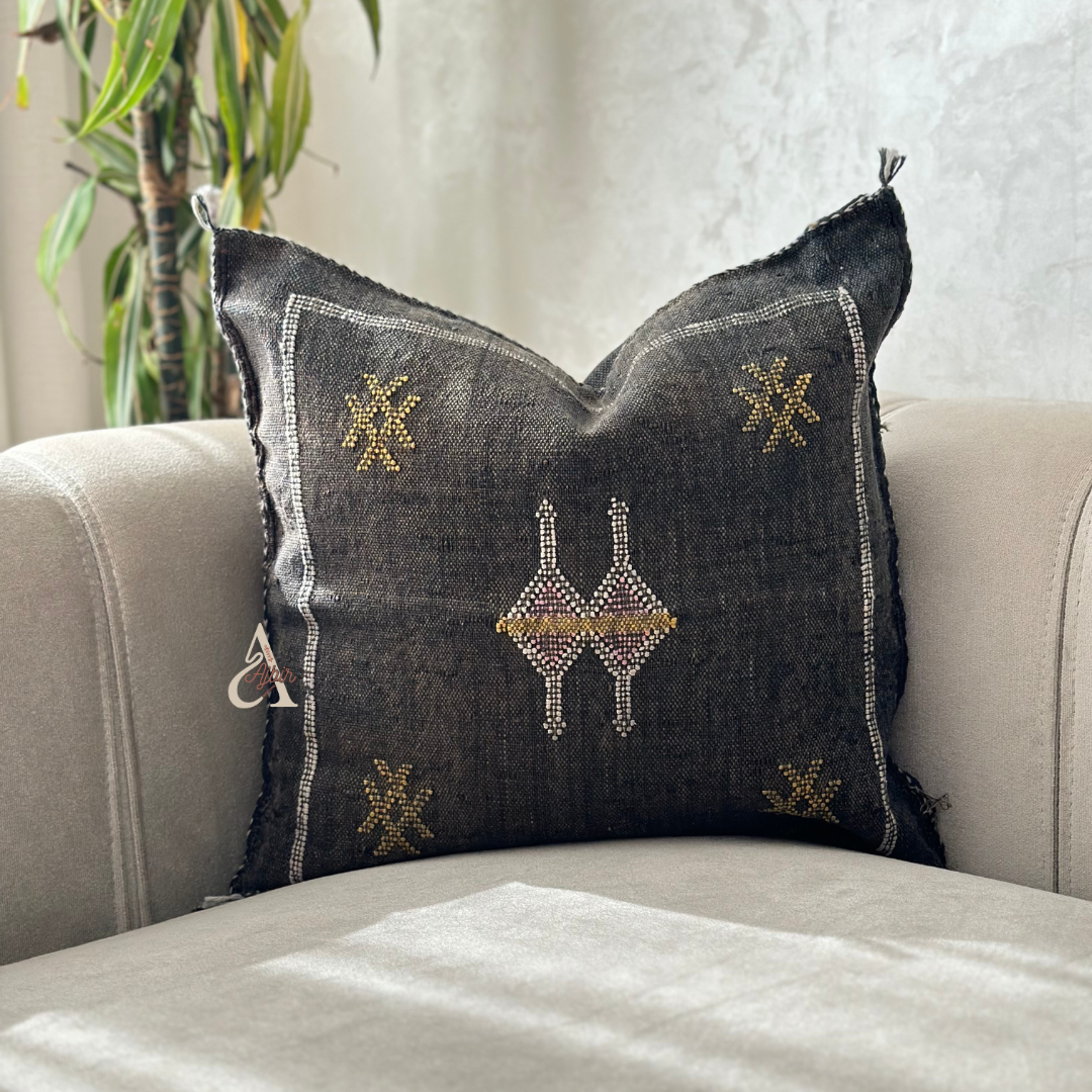 Housse de coussin artisanale Sabra (soie de cactus) noir