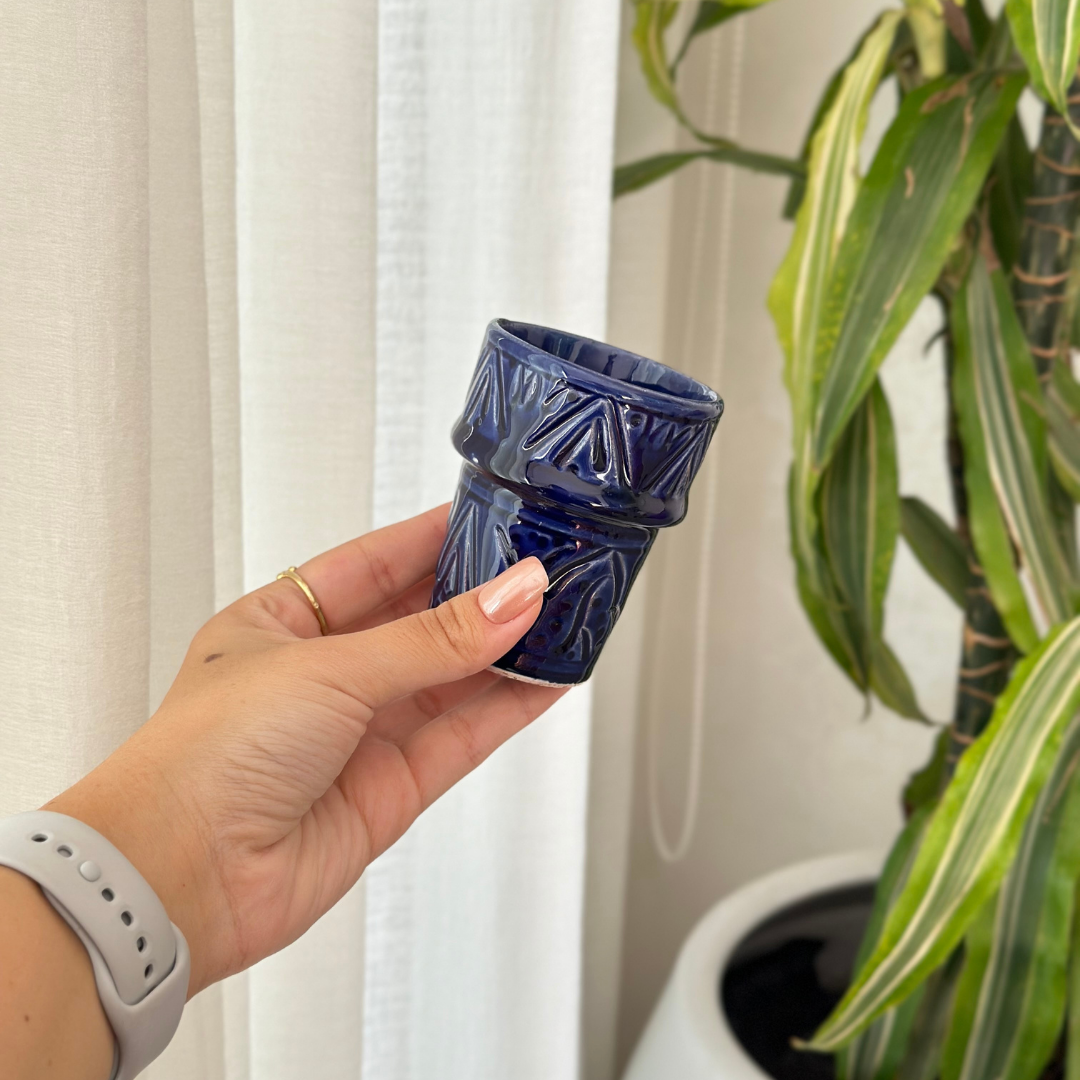 Découvrez la tasse Tizwelt vernis, une pièce unique de l’artisanat marocain, fabriquée à la main en terre cuite avec une décoration originale d'empreintes colorées. Sa finition vernie brillante met en valeur les motifs subtils, créant une tasse à la fois fonctionnelle et esthétique. Idéale pour vos boissons chaudes ou froides, elle apporte une touche authentique et moderne à vos moments de dégustation.