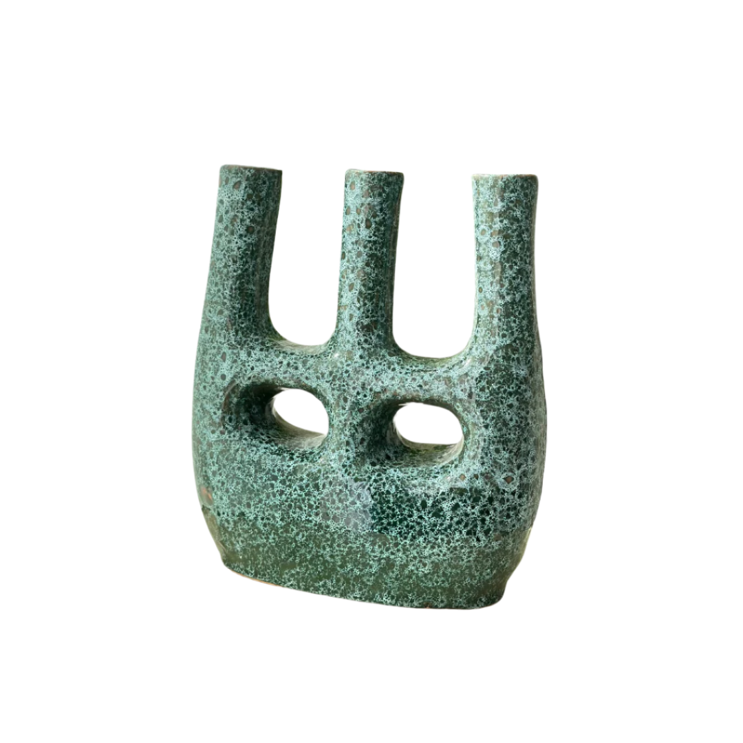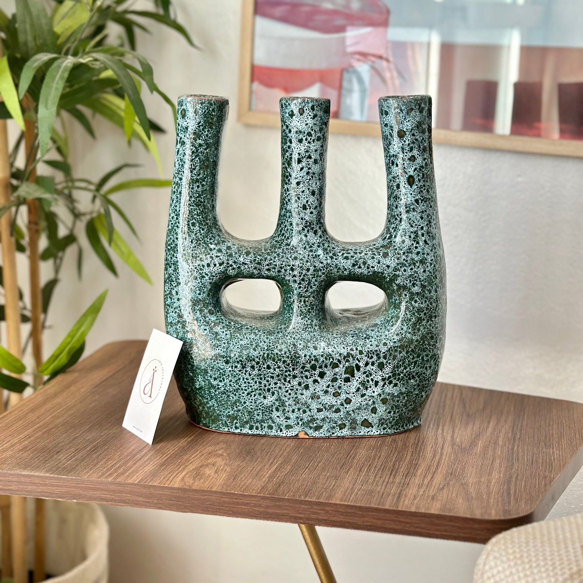 Découvrez notre vase en céramique d'une élégante pureté, évoquant la forme gracieuse d'une main. Confectionné avec soin, sa teinte noire, ses touches de bleu et sa finition peinture vernis ajoutent une touche de simplicité et de modernité à votre espace. Ce vase unique capture l'essence de l'artisanat marocain dans un design contemporain, prêt à embellir votre intérieur.