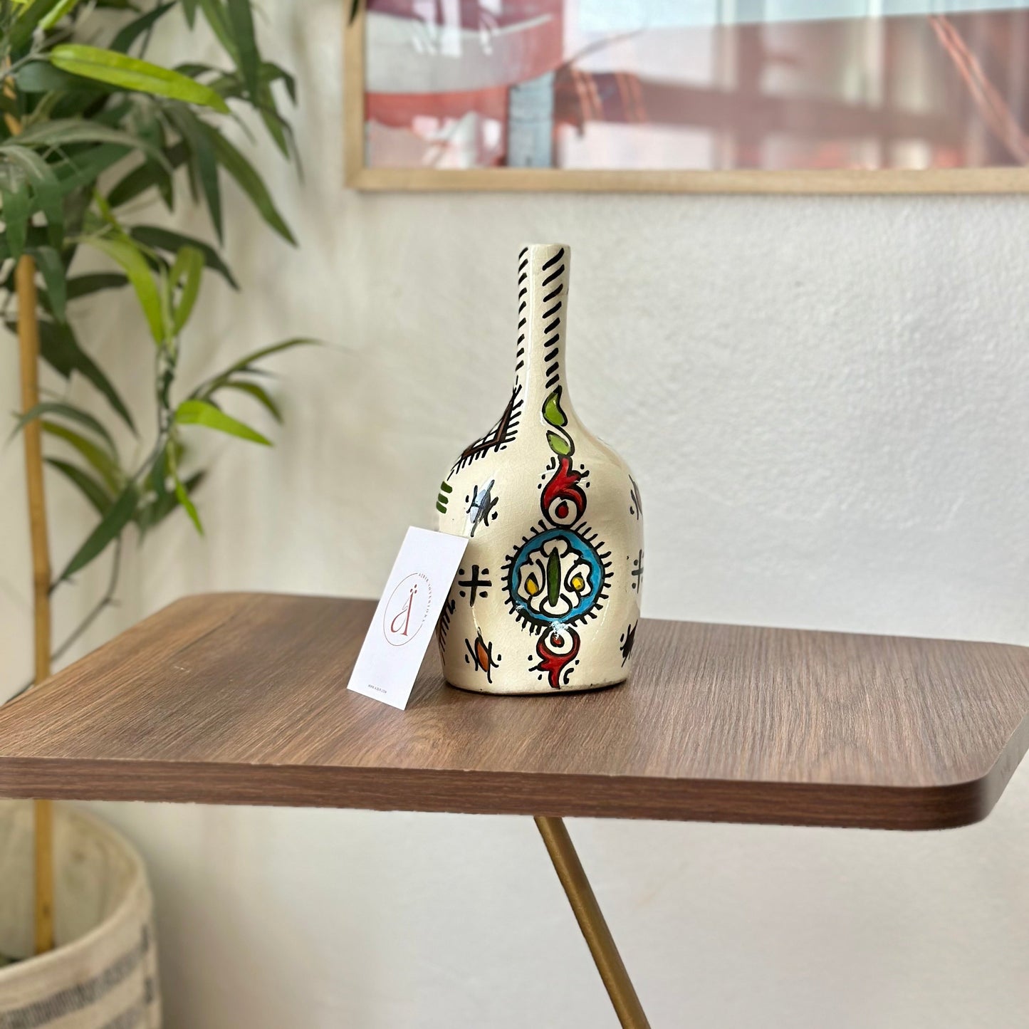 Le vase artisanal bouteille Amazigh zahra est une pièce unique qui apporte une touche authentique et intemporelle à votre décoration intérieure. Fabriqué à la main par des artisans marocains, ce vase s'inspire des formes traditionnelles et des motifs du peuple Amazigh, symbolisant un savoir-faire ancestral. Sa forme de bouteille lui donne un aspect élégant et moderne tout en préservant l'âme de l'artisanat marocain.
