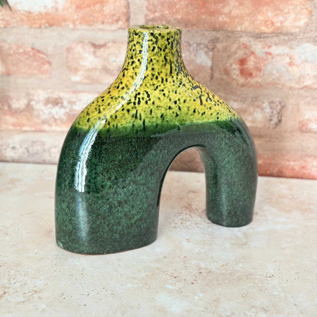 Découvrez le Vase artisanal Azul vernis, une pièce d’exception qui allie design contemporain et savoir-faire traditionnel marocain. Fabriqué à la main avec soin, ce vase se distingue par sa finition vernie éclatante qui met en valeur ses lignes épurées et son allure moderne. Idéal pour mettre en valeur vos bouquets de fleurs ou pour créer des compositions florales raffinées, il apporte une touche d’élégance artisanale à tout intérieur. Sa qualité de fabrication et son esthétique unique en font un objet décoratif incontournable pour les amateurs d’artisanat et de design.