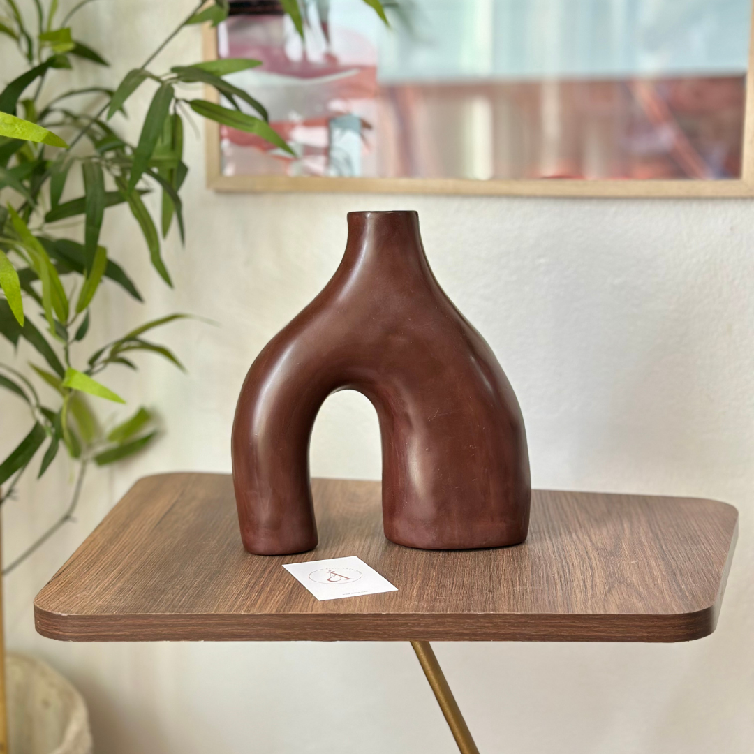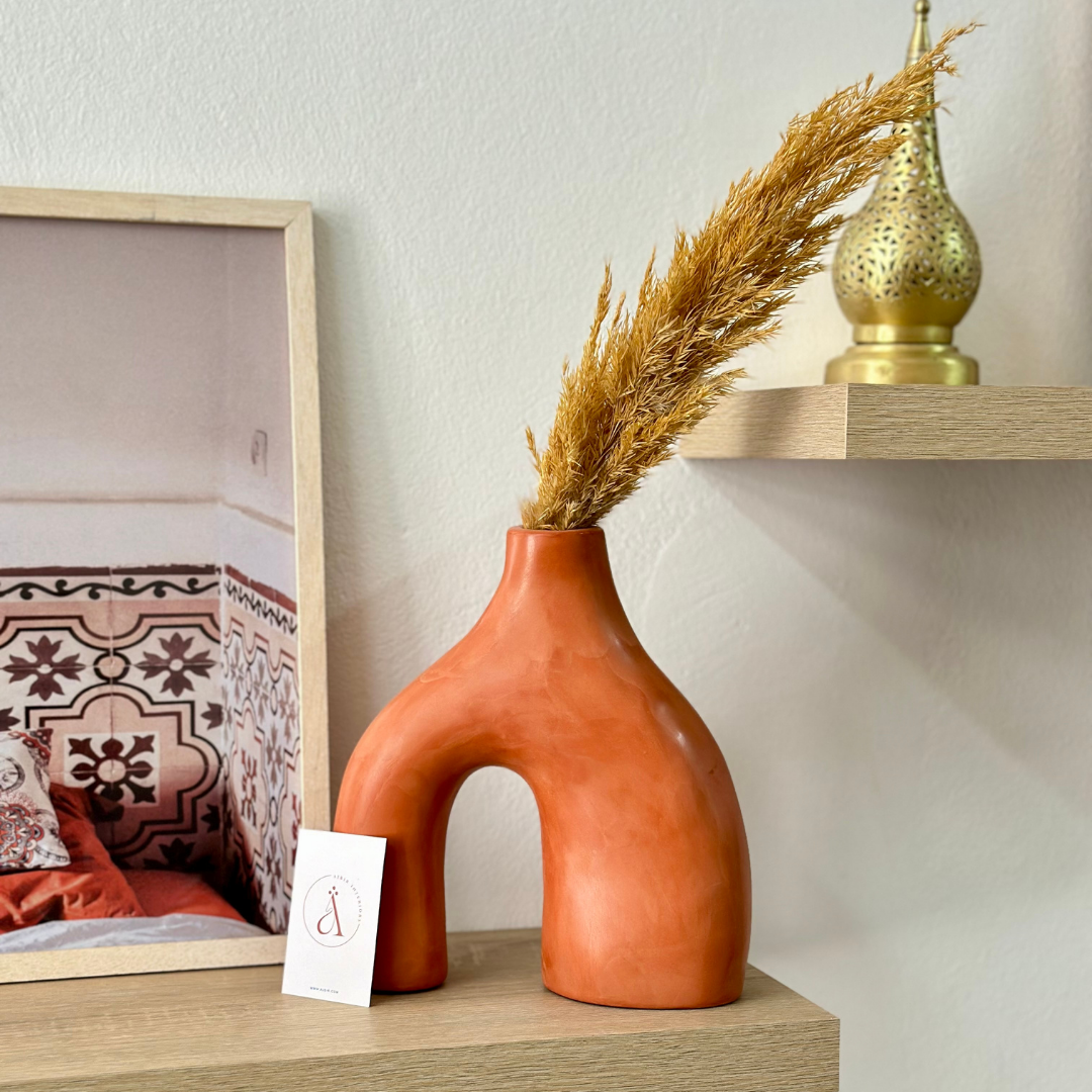 Avec ses dimensions, ce vase compact mais remarquable s’intègre facilement sur une console, une étagère ou une table basse. Son ouverture centrale et ses lignes fluides en font un objet d’art à part entière, parfait pour sublimer un coin déco ou servir de vase pour fleurs séchées, tiges graphiques ou herbes naturelles.