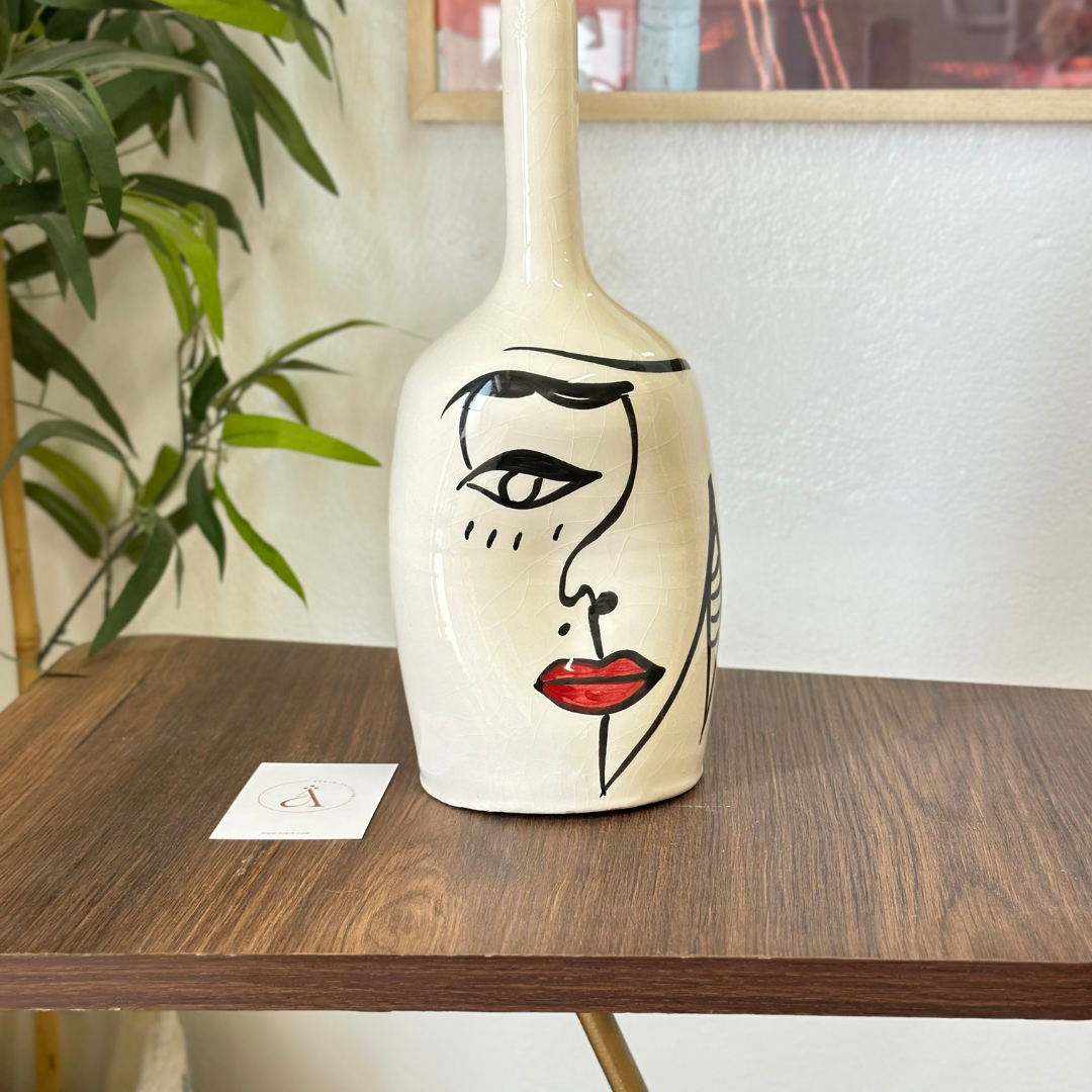 Apportez une touche artistique et contemporaine à votre décoration avec le vase artisanal Oudm blanc. Réalisé en céramique blanche et orné d'un dessin de visage en style art line, ce vase combine modernité et savoir-faire traditionnel. Parfait pour sublimer vos bouquets ou comme pièce décorative, il s’intègre harmonieusement dans tous les intérieurs.
